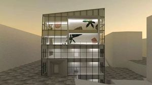 一层是两个橱窗展示区,正摆放着他们最近的“包豪斯百年互动展”的展品,至于一家家具店为什么会办展览?这个疑问留到后面讲。进入店铺正厅需先乘坐电梯到三层,当三层的电梯门打开那一瞬间你就会明白,为什么会鬼使神差的走进这栋玻璃小楼—— 眼前的这片空间着实赏心悦目。
