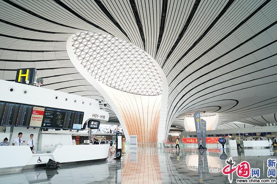 北京大兴国际机场内部,如同置身艺术长廊。中国网记者 刘维佳/摄