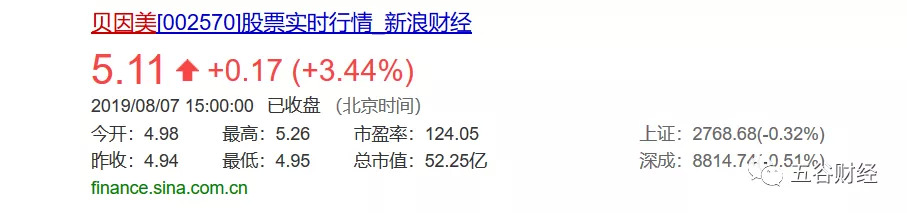 截止2019年8月7日收盘,贝因美的股价在5.11元/股,上涨3.44%;粗略计算一下,恒天然此次计划减持股票的市值在5225万元左右。
