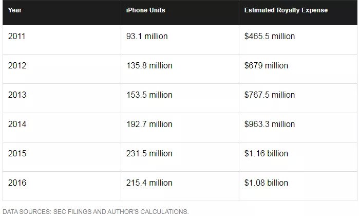 没人知道他高兴什么,因为不久之后英飞凌就丢掉了苹果这个最大的客户。苹果以每台手机7.5美元的价格向高通缴纳专利许可费,这还是苹果向高通允诺让高通“独家提供基带芯片”后的“折扣价”,否则就是每台设备12-20美元的价格。