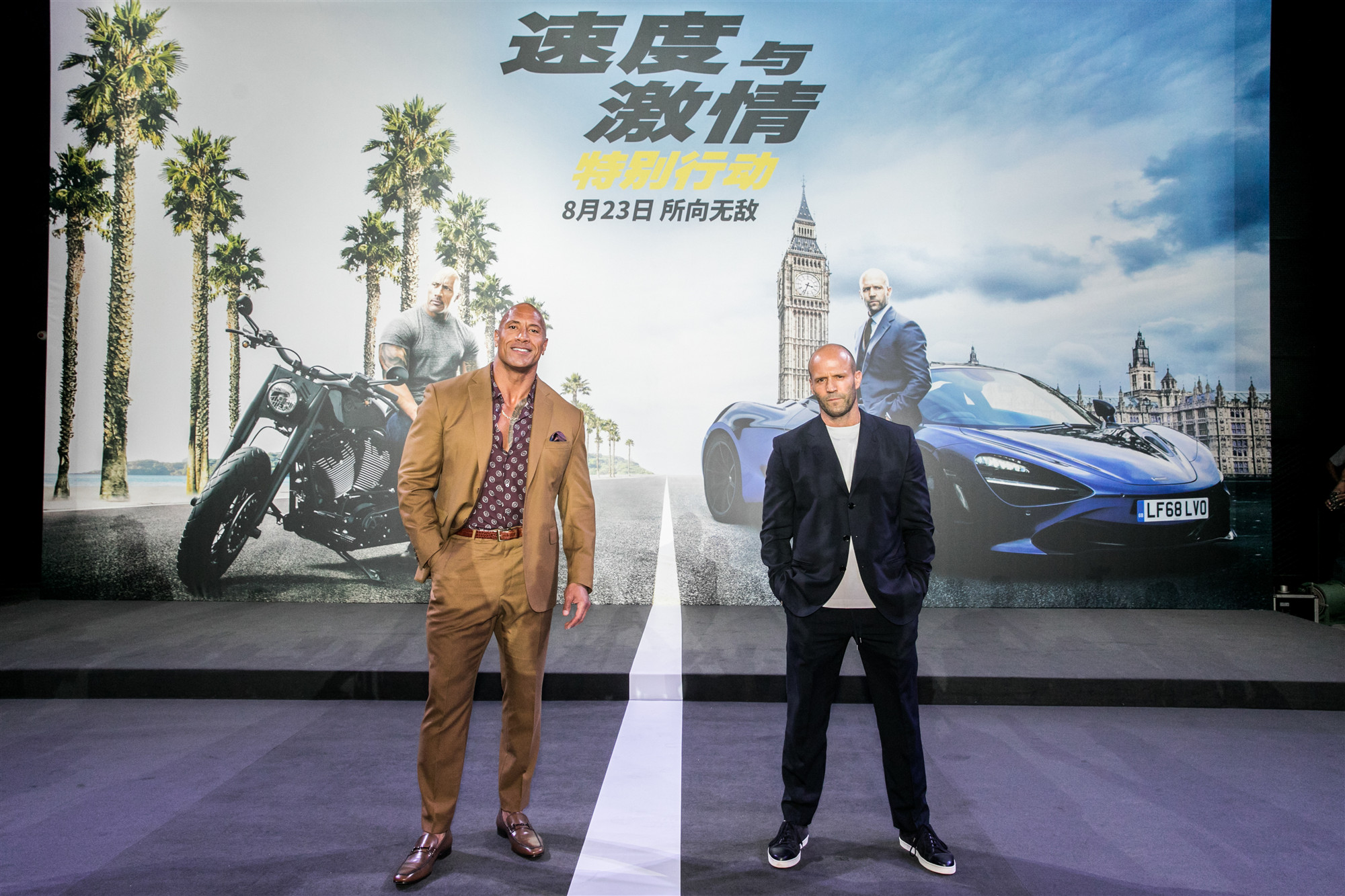 8月5日,由环球影业制作的《速度与激情:特别行动》在北京举行发布会,道恩·强森、杰森·斯坦森,及导演大卫·雷奇、编剧克里斯·摩根、制片人海拉姆·加西亚等人出席。《速度与激情:特别行动》将于8月23日正式内地上映,据片方介绍,截至目前,影片已在全球50个国家和地区夺得首周末票房冠军。