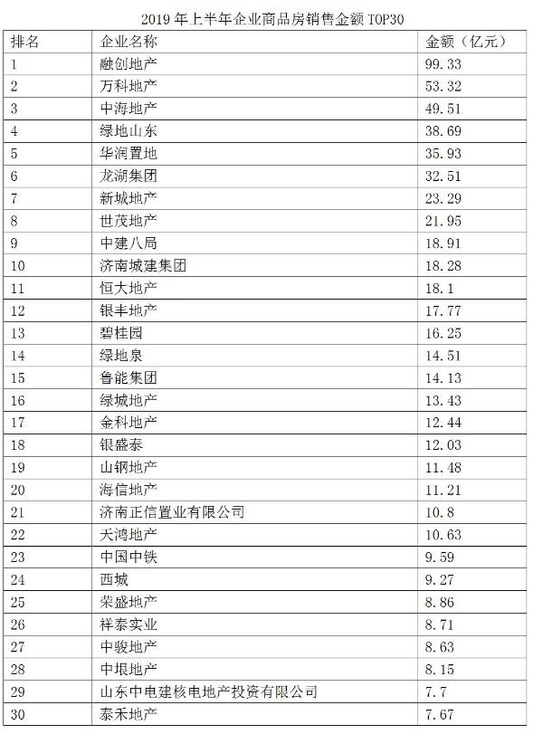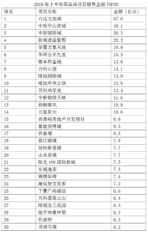 融创以99.33亿元的销售金额高居榜首,超出第二名的万科46亿元,中海位列第三,商品房销售金额为49.51亿元。万达文旅城单项目半年销售业绩达67亿。