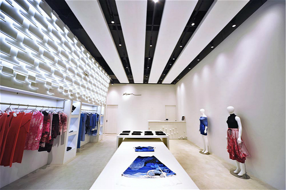 在选择设计师品牌方面,新光天地苏州筛选出了几个在中国比较知名的名字,并且对它们进行了精心的包装。夏姿•陈此前虽然在内地已有多家门店,但新光店是它的首个形象店面。进门后是一条四面玻璃墙的展示过道,陈列了她的代表作。另一些名气不那么大的品牌设计师更像是百货的培养对象,以集合点的形式分散在各个区块,但没有明显的分割。