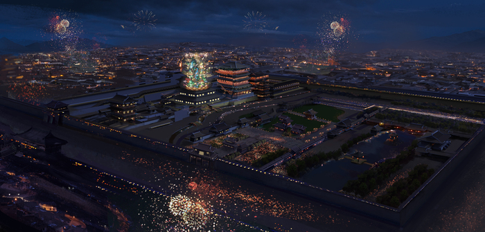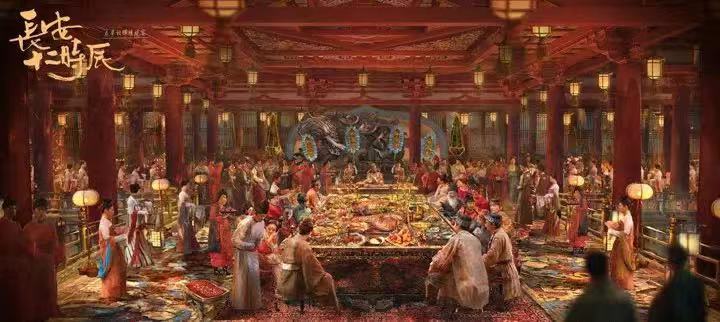 尽力还原大唐的一天,这是导演曹盾最早确立的宗旨。机会来了,金杨也不愿意只做一个想当然的东西,他希望花一些功夫做一个结结实实的东西——把一千年前的国际大都市立体而有质感地展示在人们面前,包括作者笔下那些神秘、富有想象力的空间,靖安司、花萼楼、大仙灯等等。具体到操作上,金杨的宗旨是,有历史原型的就依据历史原型,没有的就看看有没有其他影视剧可以参考,从中捕捉到一些蛛丝马迹,再按照自己对唐朝审美的理解进行设计。