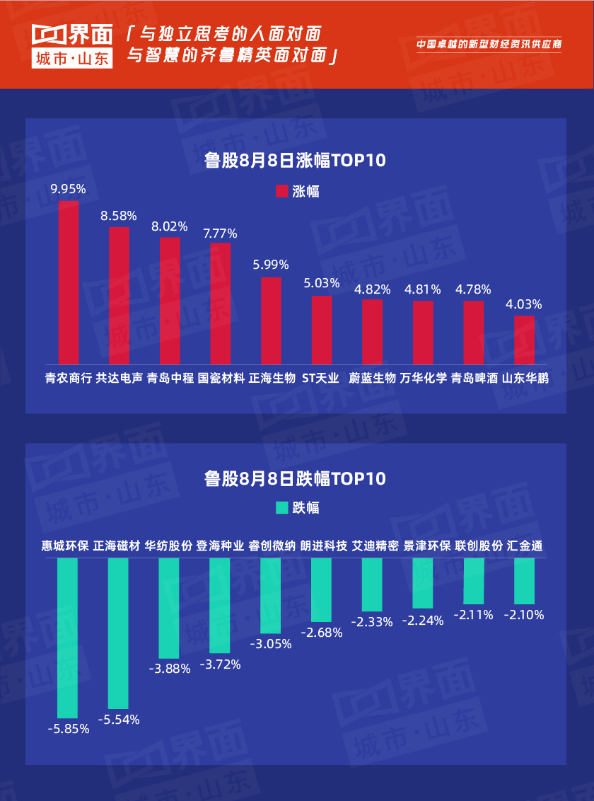 鲁股总结:126只个股上涨,青农商行涨幅9.95%领跑山东