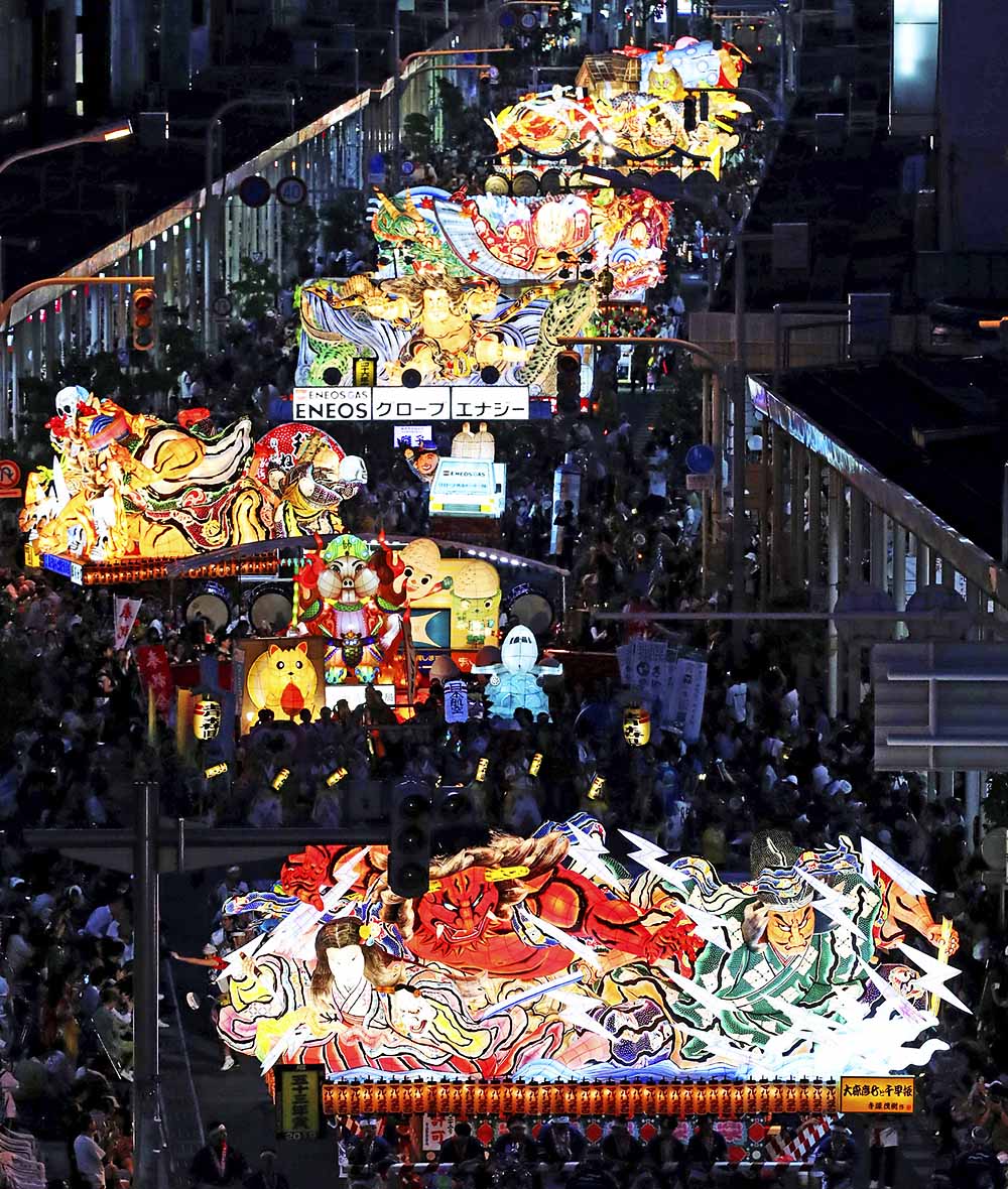 当地时间2019年8月2日,日本北部青森县青森市,日本“睡魔节”活动开启,睡魔节的特点是日本武士形状的灯笼巡游。灯笼是木头或竹子结构,外面糊上纸。纸上的图案——大多数武士是历史上著名的将领或歌舞伎中尽人皆知的人物。一些人物有着似乎正在注视着你的眼睛!有的人物甚至是孩子们画的。在黄昏时分,灯笼被点亮;当黑夜来临时,灯笼成为一道引人入胜的景象。25个高5米、宽9米的大尼布塔与汉内托(尼布塔舞者)一起行进,伴随着鼓声、竹笛声跳舞吟唱。在为期6天的节日期间,吸引着超过200万人游客。