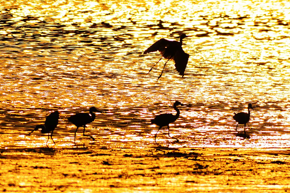2019年8月5日,青岛市城阳区墨水河入海口湿地波光潋滟、鹭鸟翔集美如画。