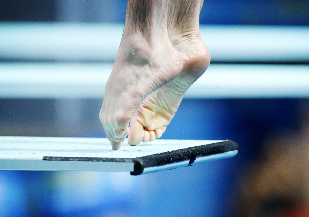 当地时间2019年8月5日,在乌克兰基辅举行的欧洲跳水锦标赛男子3米跳板决赛前,乌克兰选手奥列格·科洛迪伊热身。