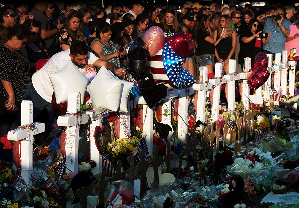 当地时间2019年8月6日,美国得克萨斯州埃尔帕索,人们献花悼念得州枪击案遇难者。得州西部埃尔帕索市一家沃尔玛超市8月3日上午突发枪击事件,当场造成22人丧生,另有26人受伤。