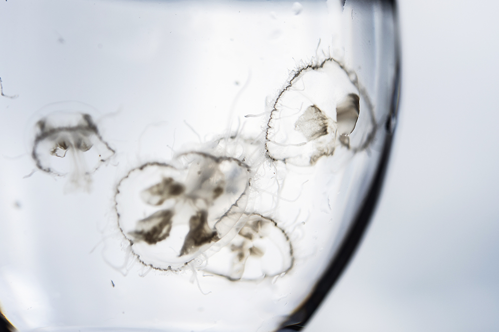 2019年8月7日,湖北恩施,在宣恩县贡水河拍摄的桃花水母。