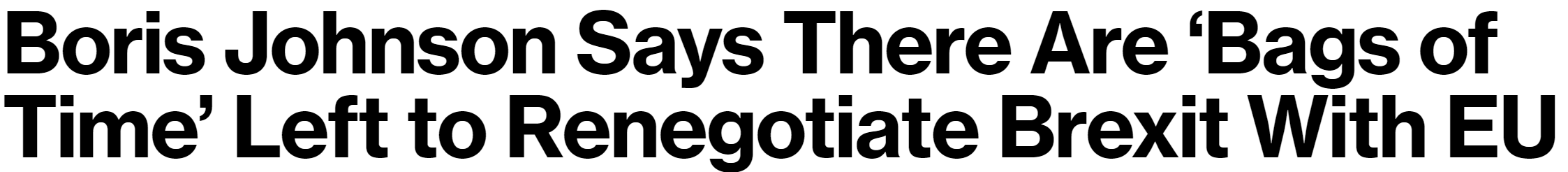 【英首相称还剩下大把时间与欧盟再谈判脱欧】英国首相鲍里斯·约翰逊敦促欧盟领导人展示“常识”,重写英国脱欧协议,与此同时,他正在进一步做好无协议脱欧的准备。