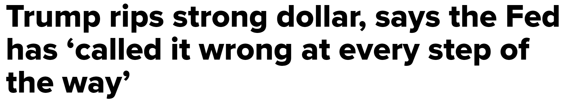特朗普称:“作为你们的总统,有人或许以为我会对我们的美元很强感到兴奋。我不会!”