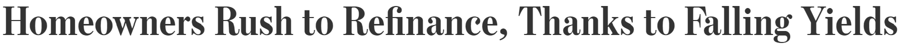 【低收益率促使美国购房者再融资】美国债券收益率下降已导致抵押贷款利率降至近3年来的最低水平,促使购房者纷纷跑去再融资。