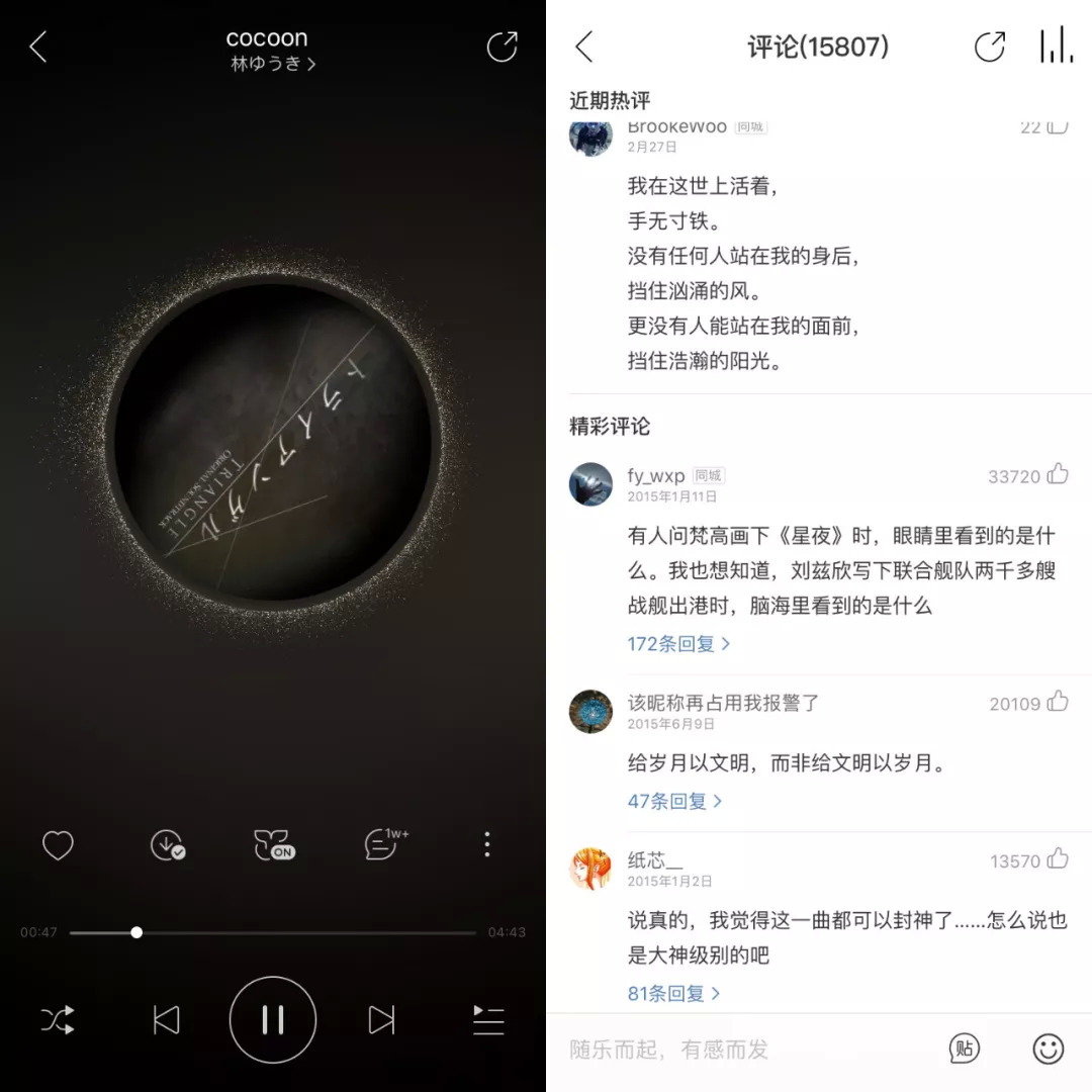 这些评论的共同点是,用户都将自己的经历与音乐联系在了一起。他们想表达的不只是音乐,而是感情。突然间,王诗沐感到豁然开朗,寻找共鸣,才是音乐评论的价值,也是音乐评论功能的发展方向。