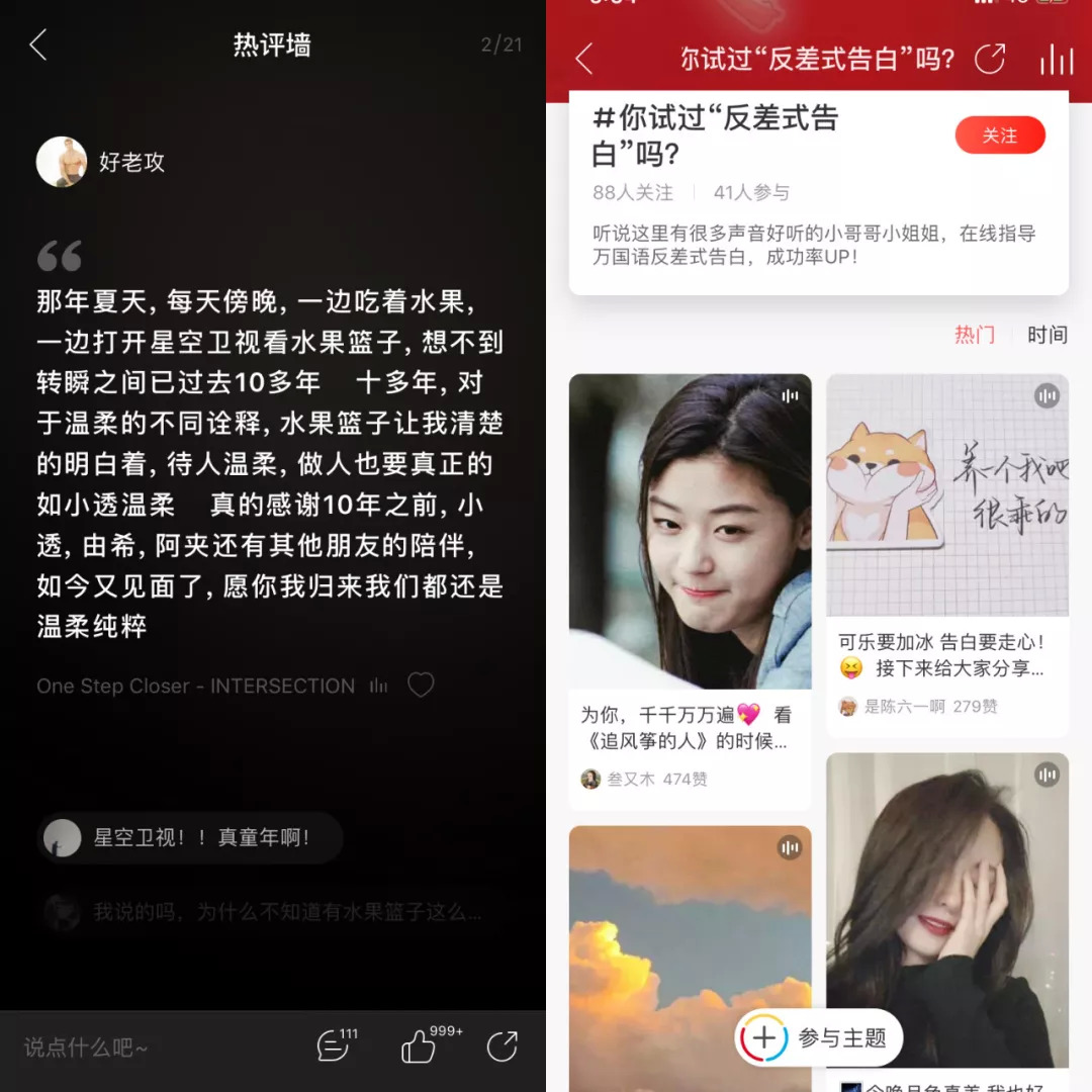 当时的前网易云产品经理王诗沐,对产品里一些有价值的评论进行了统计。他发现,这些评论大多集中在“初恋”“前男女友”“暗恋”“偶像”等角度上。