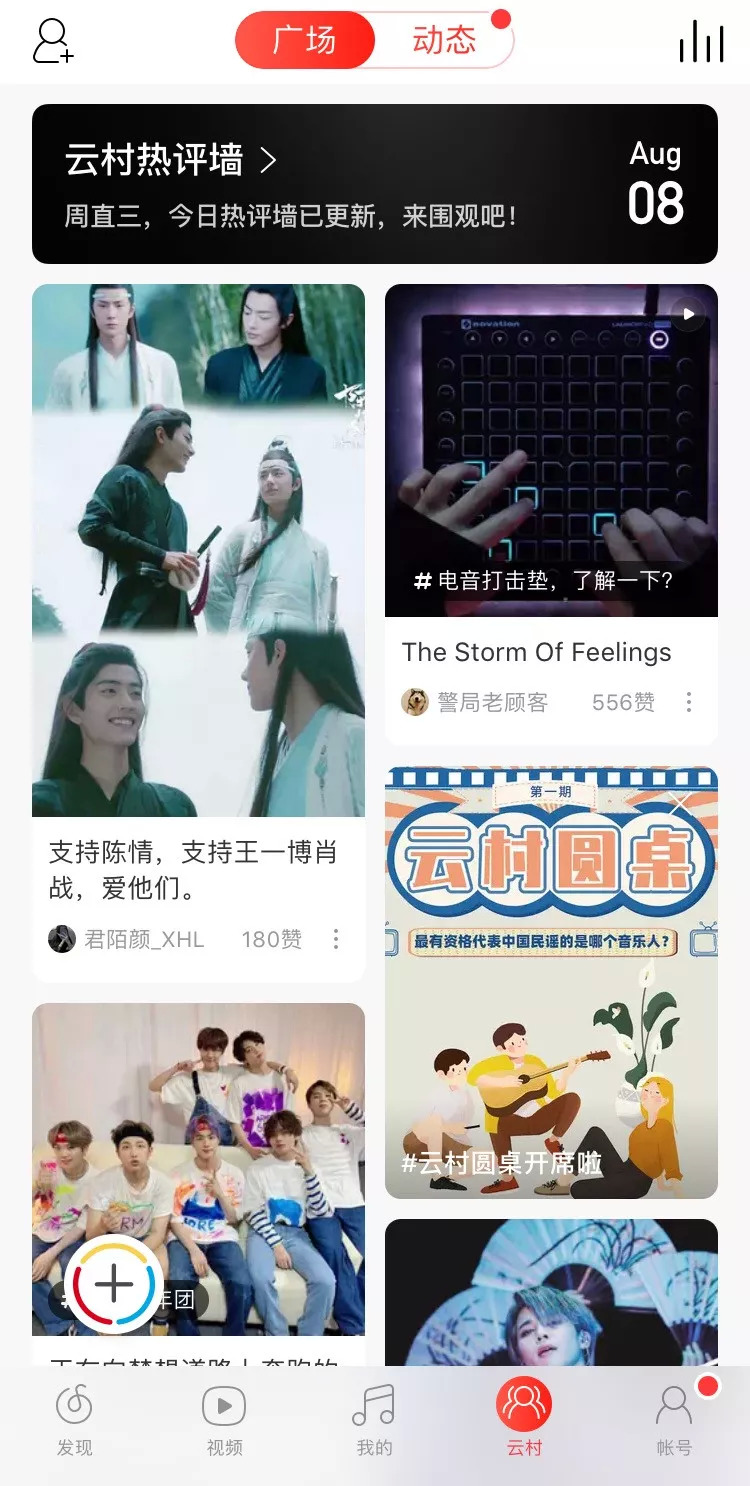 同时,网易云音乐又频频上线视频、直播、交友等社交功能,开始在音乐社区的道路上“大鹏展翅”。7月29日,刚刚上架的网易云音乐,又在一级入口上线了一个新的社区板块,“云村”。