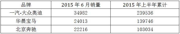 近日,各大品牌都公布了6月销量以及2015上半年的销量数据。我们先来看看奥迪、宝马、奔驰三大德系豪华品牌国产车型方面的6月销量以及上半年累计销量: