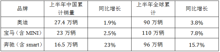 显然,奔驰的增长就要强势许多,这从全系车型的全球销量中也一样可以反映出来。远远领先对手的增速已经令奔驰(含smart)在全球上半年累计销量中超越奥迪,即使是不含smart,奔驰与奥迪品牌车型在全球上半年累计销量的差距也不到4000台。