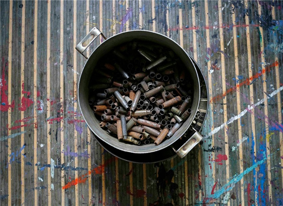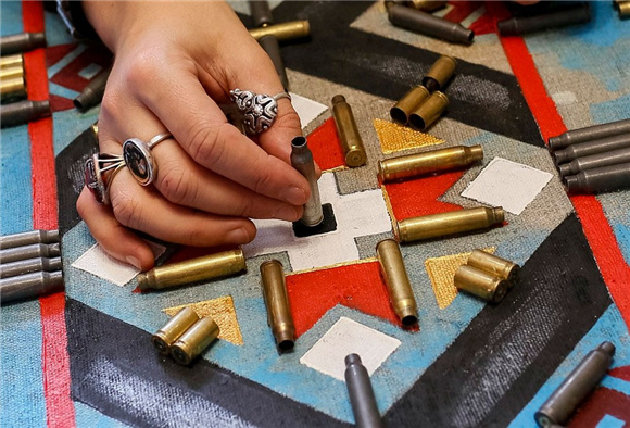 乌克兰自2014年爆发内战以来,至少有6400名民众死于武装冲突,数万人无家可归。出于对俄罗斯干预内战的不满,乌克兰艺术家Dariya Marchenko最近以5000颗弹壳拼成了普京的肖像,并将它命名为《战争之脸》(The Face of War)。