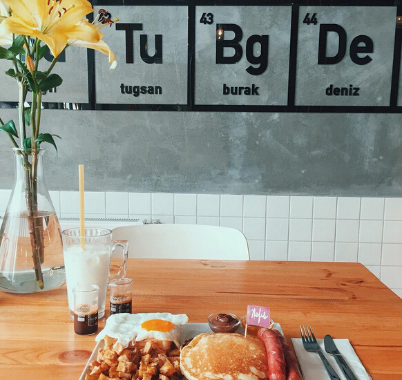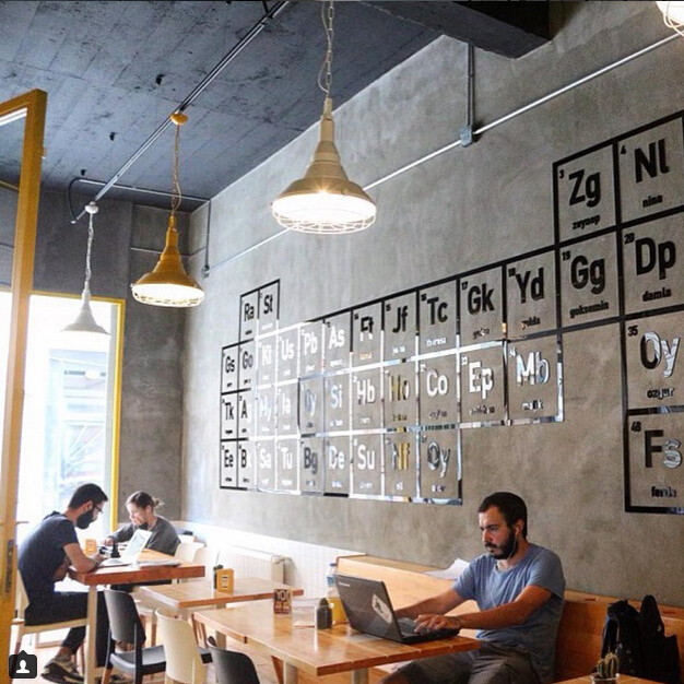 店里的装潢充满着化学元素,水泥墙、白瓷砖,会让理科生觉得自己走进了另一间实验室。