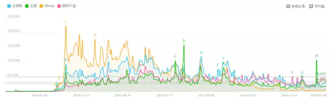 偶像男团的散场并不少见,国内较为著名的男团如小虎队、飞轮海、至上励合等不是解散就是没落,TFBOYS 似乎也要走上这条老路,成立六年来,王俊凯、王源、易烊千玺个人粉丝越来越多,团粉四叶草却越来越少,百度搜索指数显示,TFBOYS 的数据六年来持续走下坡路,已完全低于了三人各自的搜索值。