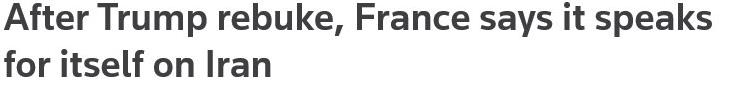 【被特朗普指责后,法国表示在伊朗问题上不需其他国家批准】法国外交部长周五表示,在试图缓和与伊朗的紧张关系方面,法国不需要其他国家的批准。此前,特朗普指责马克龙向德黑兰发出了“混合信号”。