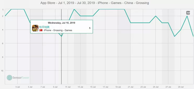 7月《和平精英》国区iOS畅销排行趋势