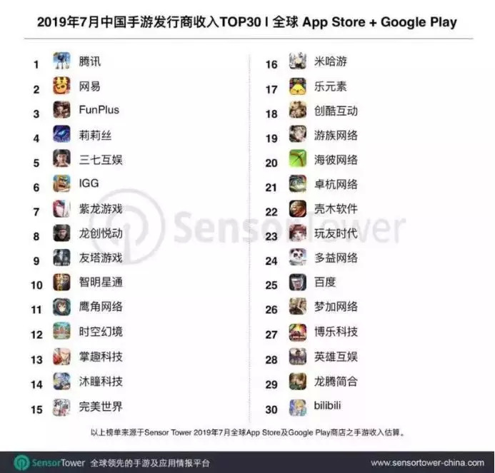 7月腾讯拿下中国手游发行商收入榜冠军