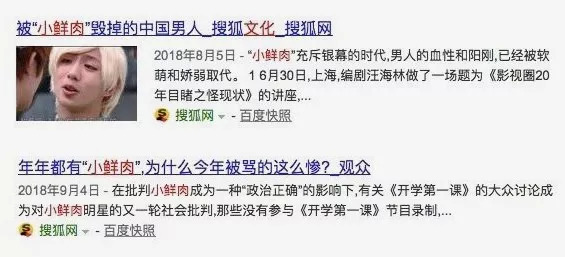 “小鲜肉” 漂亮的颜值可供人观赏,但缺乏内涵的小鲜肉很难使具有成熟心智的人欣赏。