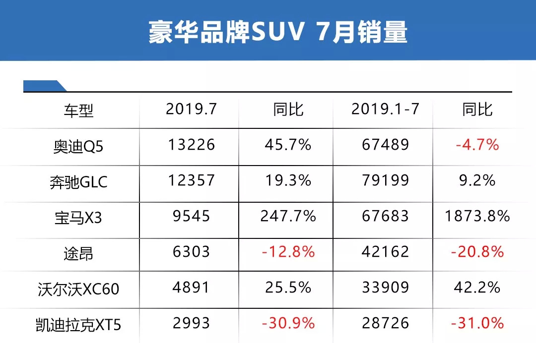 以上就是7月份整体豪华轿车和SUV销量的排名,国内豪华车的代表仍然以BBA车型为主,当然这里面也看到二线豪华品牌上榜。如果大家按照去年的表单对比能发现,今年的整体销量呈下滑趋势明显,整体仍然处于低迷状态,还未回暖。