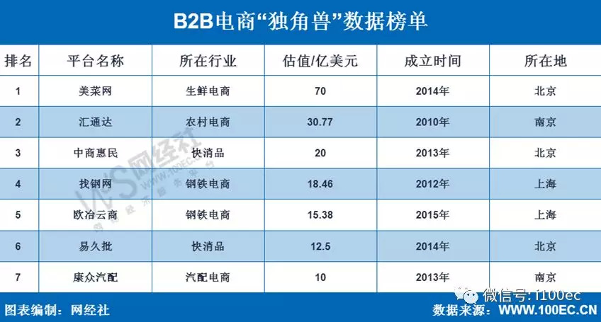 2、无爆发型平台。曾经在2015、2016火爆的B2B,并没有很好的找到自己的发展模式,在多年的发展中,并未涌现出现优秀的“独角兽”企业。