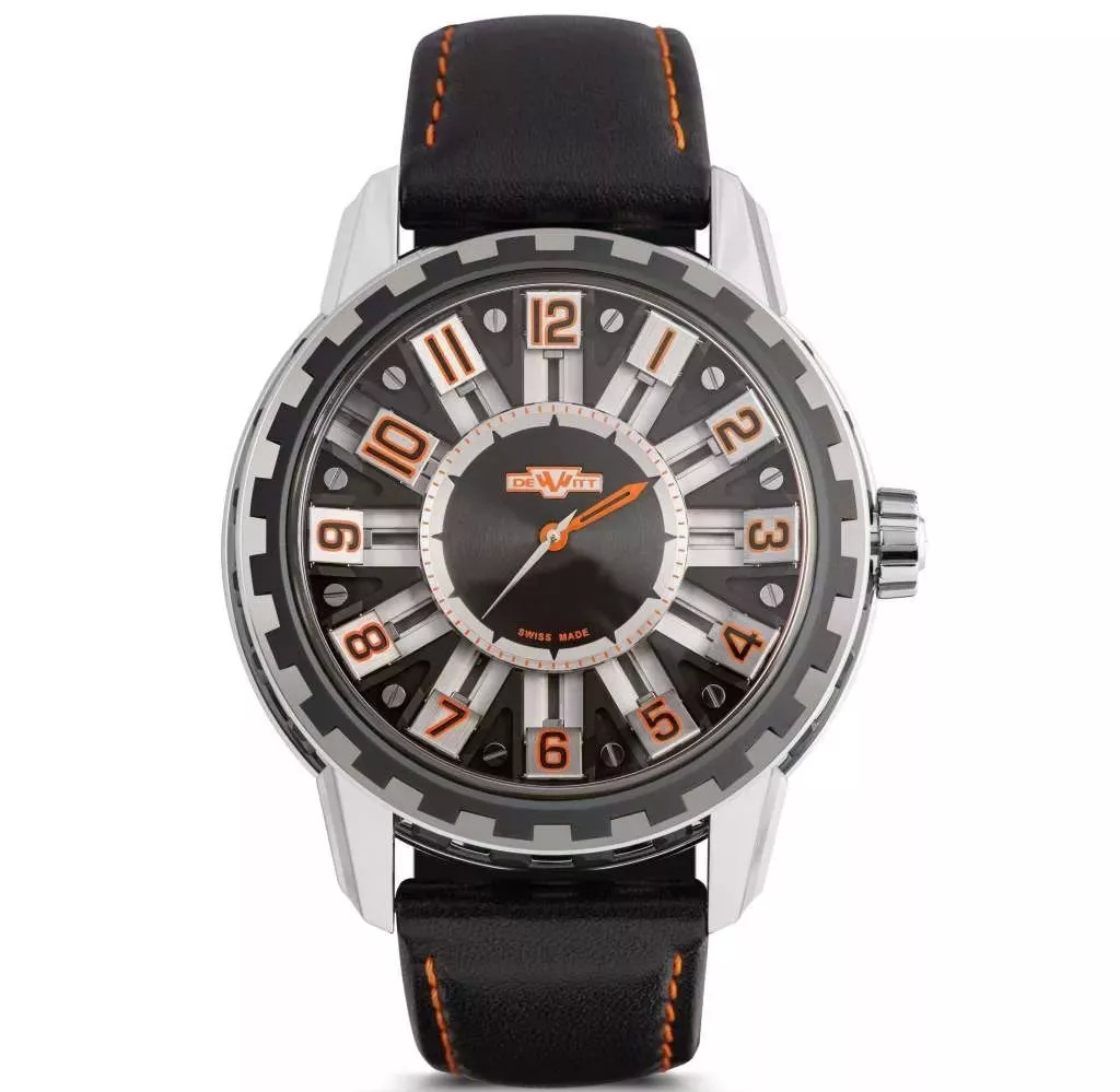 同样参加复杂机械功能奖评选的Dewitt品牌Slide腕表,表盘中央是一根分针和一根秒针,表盘外缘是数字时标。