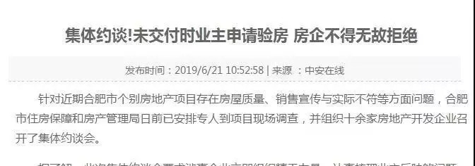 文件显示,近期因合肥市新建商品房项目(尤其是全装修商品住宅项目)在房屋交付过程中陆续发生了多起群访群诉时间,造成了恶劣影响。