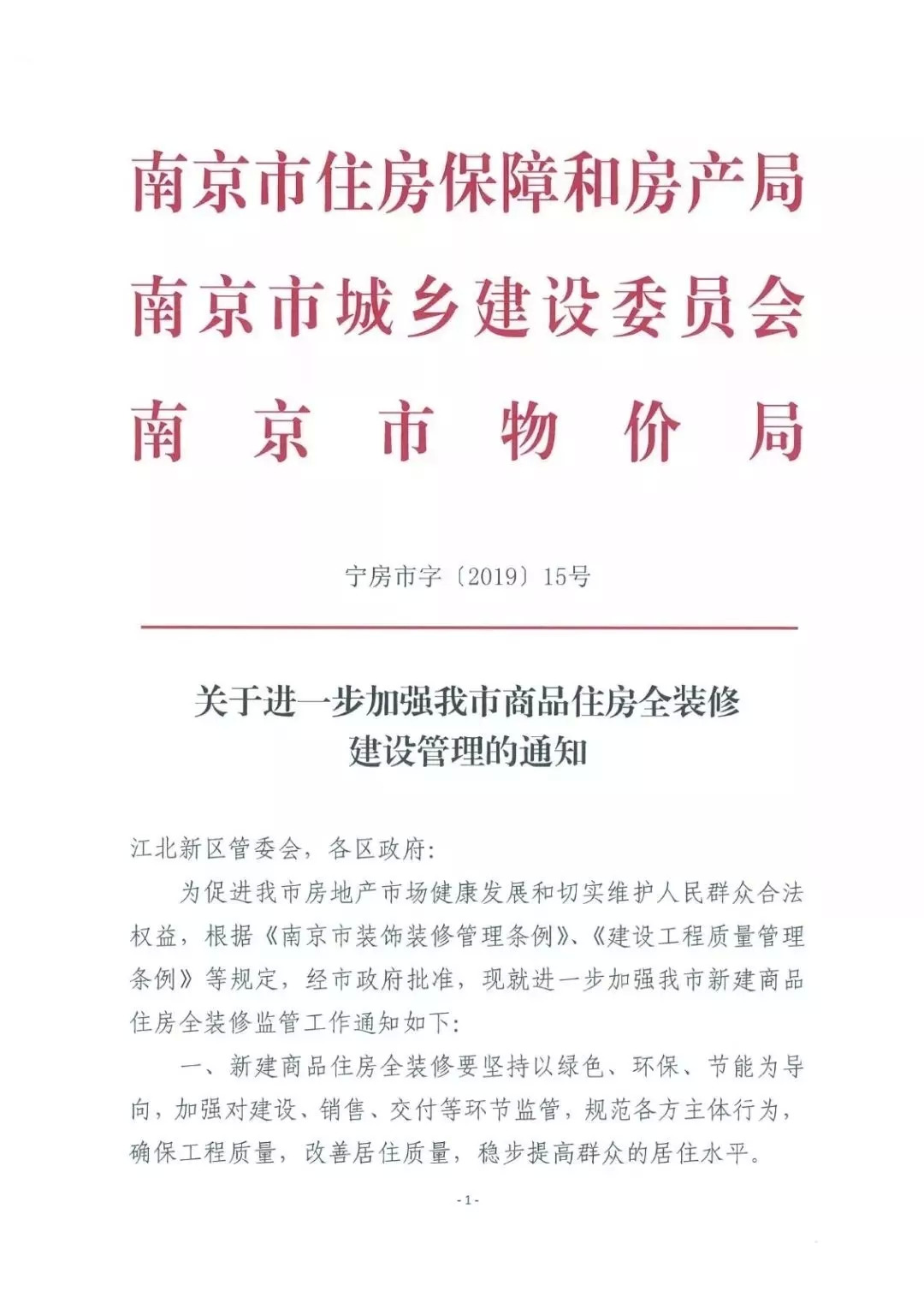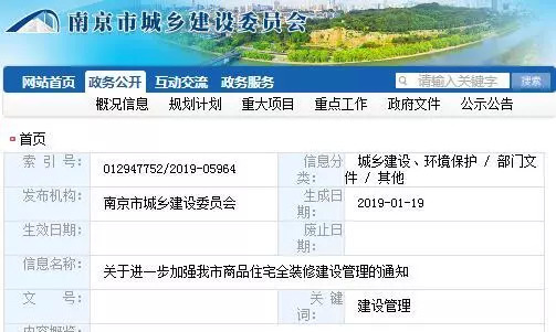 1 月 19 日,南京市住房保障和房产局、南京市城乡建设委员会、南京市物价局联合出台《关于进一步加强我市商品住房全装修建设管理的通知》即“精装新政”,现在已经开始执行,规范开发商行为。