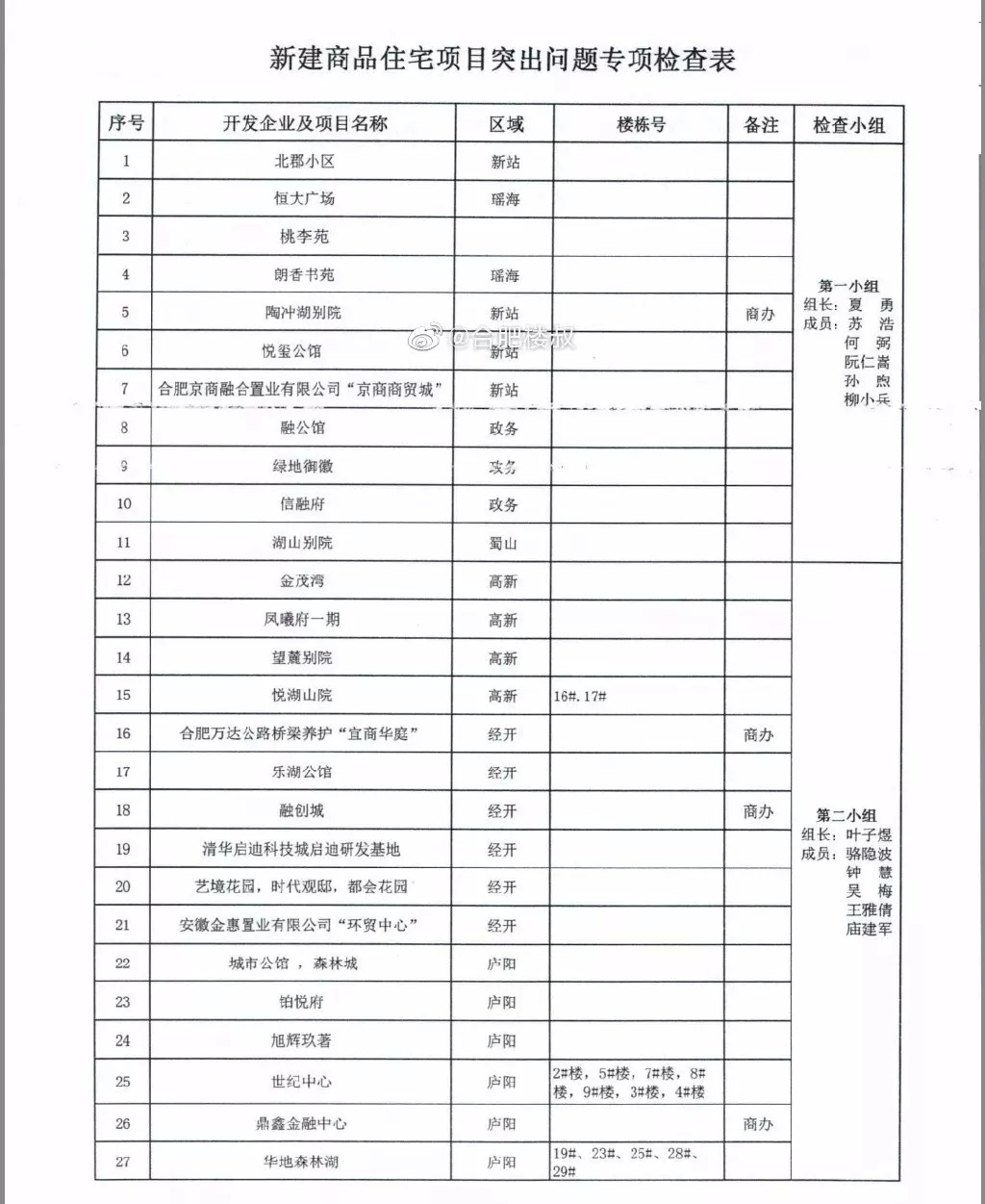 合肥40个被查小区名单曝光