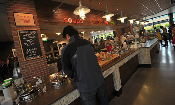 微软公司位于华盛顿雷德蒙德的总部餐厅供应的食物都是要付费的。一份牛排芦笋和藜麦价格6.50美元,一个手工制作的单人份比萨饼要5.50美元,价格比市面价格低很多,听说味道也能算是当地最棒的。