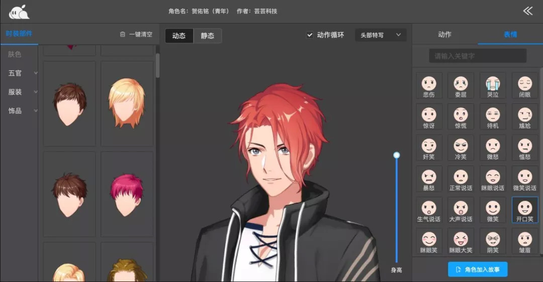 开放素材库的提供可以帮助创作者有效降低成本。不同于传统依靠画师人工完成的立绘,芸芸采用2D骨骼动画,创作者可以通过捏脸等方式直接独立完成立绘,而无需再进行二次约稿,“通过不同组合,可以搭配出500万种不同的服饰搭配。”