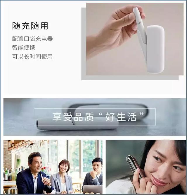 或许是母公司是烟草公司的血统,iQOS电子烟的设计也更像传统烟,iQOS的烟弹为圆柱形,外形上更接近真烟。iQOS原理上是一个烟草加热系统,加热烟草以释放研友盐碱的蒸汽,却不会点燃烟草。一般烟草超过600摄氏度会产生有害气体,但iQOS的加热技术避免了这些危害。