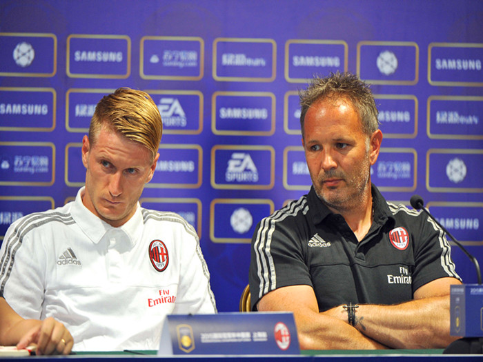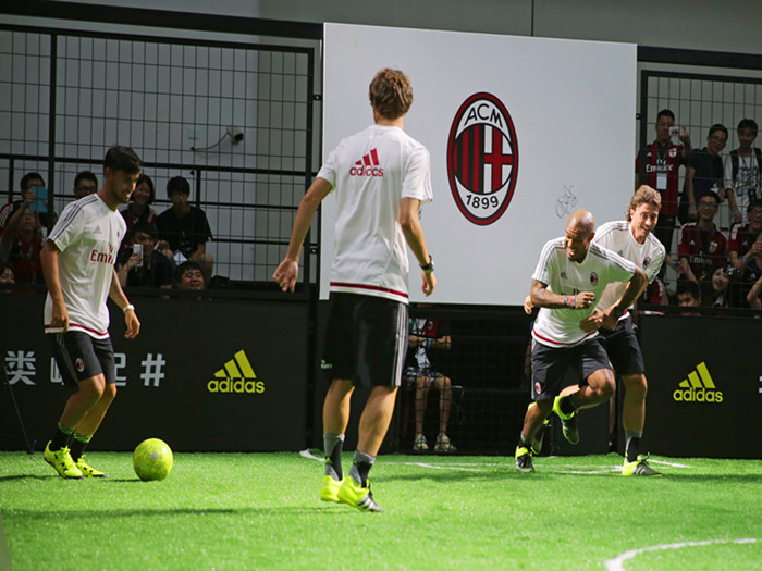 7月27日下午,AC米兰球员蒙托利沃、梅内、德容与德西利奥等12位球星在俱乐部副主席加利亚尼、主教练米哈伊洛维奇的率领下,现身位于上海世博创意秀场的“阿迪达斯足球厂”,与球迷们见面。