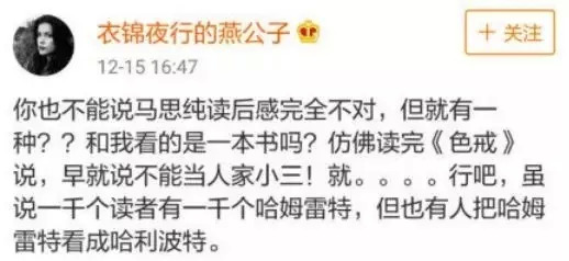 以“锦衣夜行燕公子”为首的一些网友,对她的读后感非常不满。