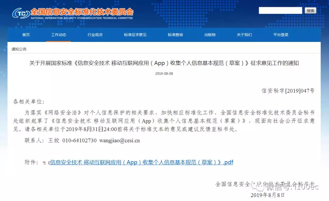 8月8日,全国信息安全标准化技术委员会发布关于开展国家标准《信息安全技术移动互联网应用(App)收集个人信息基本规范(草案)》征求意见工作的通知。《草案》中明确,App不得收集与所提供的服务无关的个人信息。对外共享、转让个人信息前,App应事先征得用户明示同意。App应对其使用的第三方代码、插件的个人信息收集行为负责。