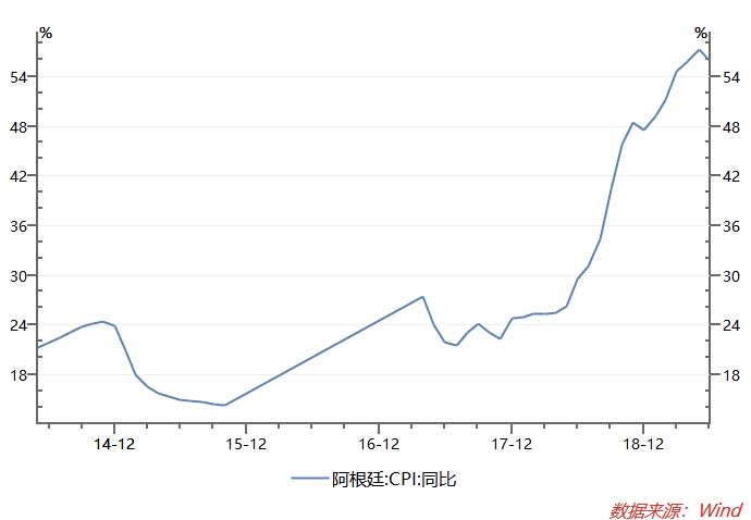 2、目前阿根廷通胀率达到夸张的55%左右。