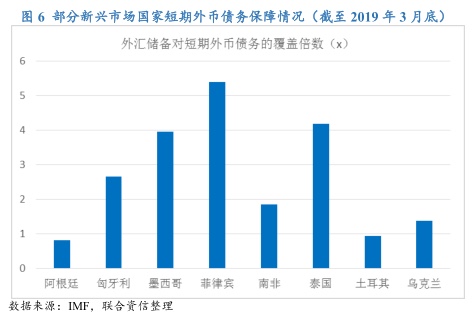 从外债的期限结构来看,阿根廷、南非、土耳其、泰国等国的短期外债占比超过 30%,存在一定的短期偿债压力。