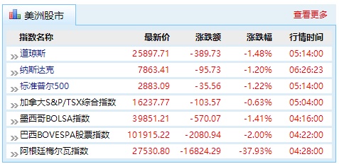 周一,美洲股市几乎全线走弱,美国三大股指跌幅均超过1%。
