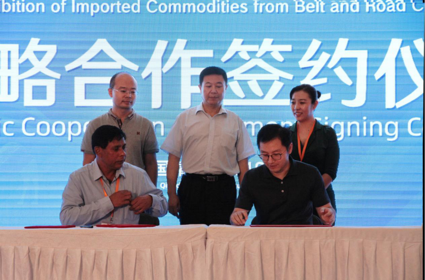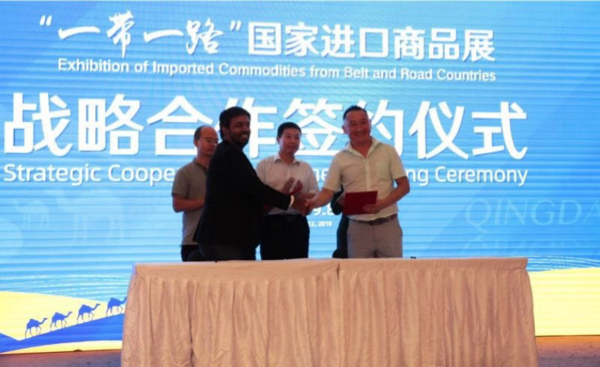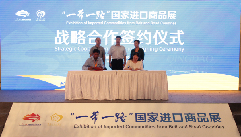 8月12日下午,“一带一路”国家进口商品展战略合作协议签约仪式在青岛崂山区金狮广场举行。