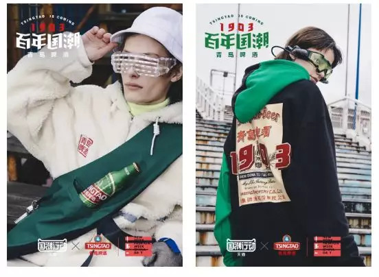 在今年年初的纽约时装周上,百年青啤化身潮流服饰,带着复刻1903年版包装罐身,亮相时装周中国日,联合主持人李晨、歌手潘玮柏创办的潮牌NPC,演绎“青”味国风。