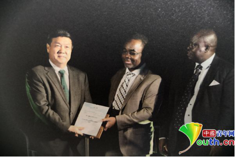 王文彪接过了“全球治沙领导者”的证书。资料图