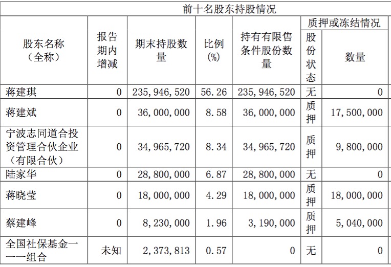 股权质押方面,公司实际控制人蒋建琪持股2.36亿股,持股比例56.26%,质押0;其兄弟蒋建斌为第二大股东,持股3600万股,质押1750万股,质押比例48.61%;第四大股东为实控人蒋建琪玮夫妻关系的陆家华,后者同为香飘飘实际控制人,持股比例2880万股,质押0;第五大股东蒋晓莹为二人女儿,持股1800万股,质押1800万股。