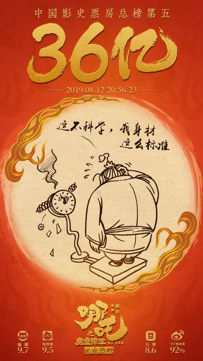 靠着连续18天的单日票房头名,《哪吒》在上周末成为中国影史上第四部跨过35亿票房的电影,同时观影人次也在今日正式破亿。截至毒眸发稿,其票房也即将超过《红海行动》,位列中国影史第四名。如果不出意外,其最终票房会超过40亿,跨入中国电影的“40亿+”俱乐部。