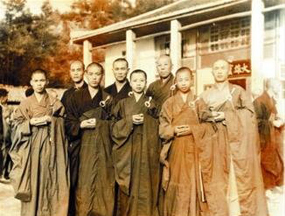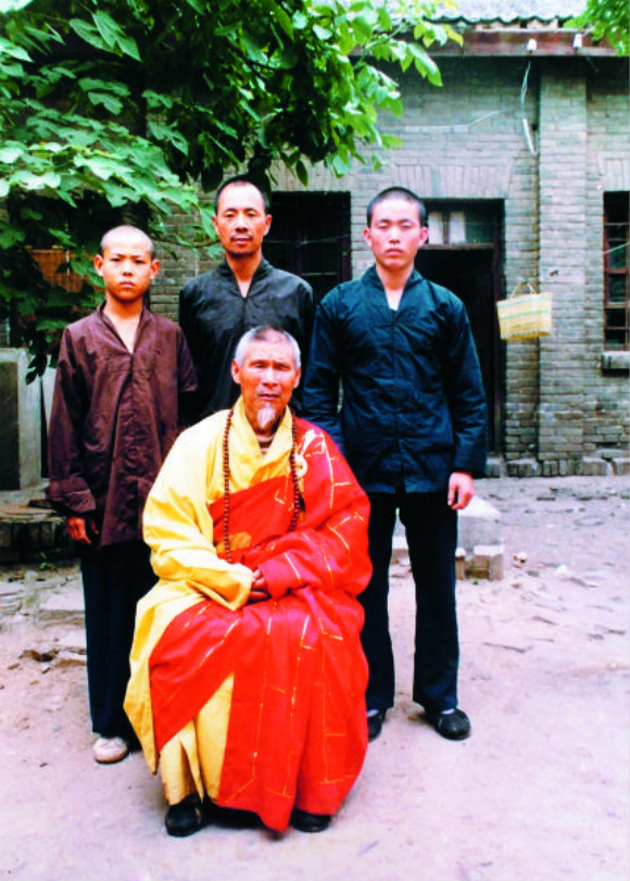 1984年,释永信(后排右一)成为行正法师(前排)的侍者。